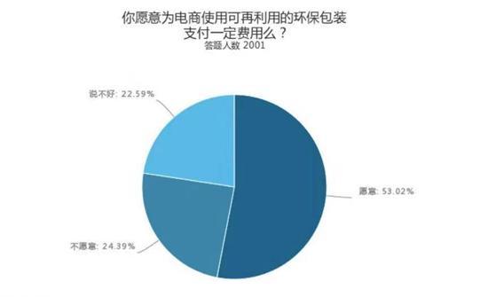 53%受访者愿意为电商使用可再利用的环保包装支付一定费用