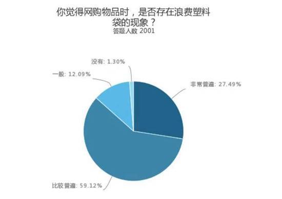 调查中,86.6%的受访者觉得电商领域存在塑料袋浪费现象,其中27.5%的受访者觉得非常普遍。
